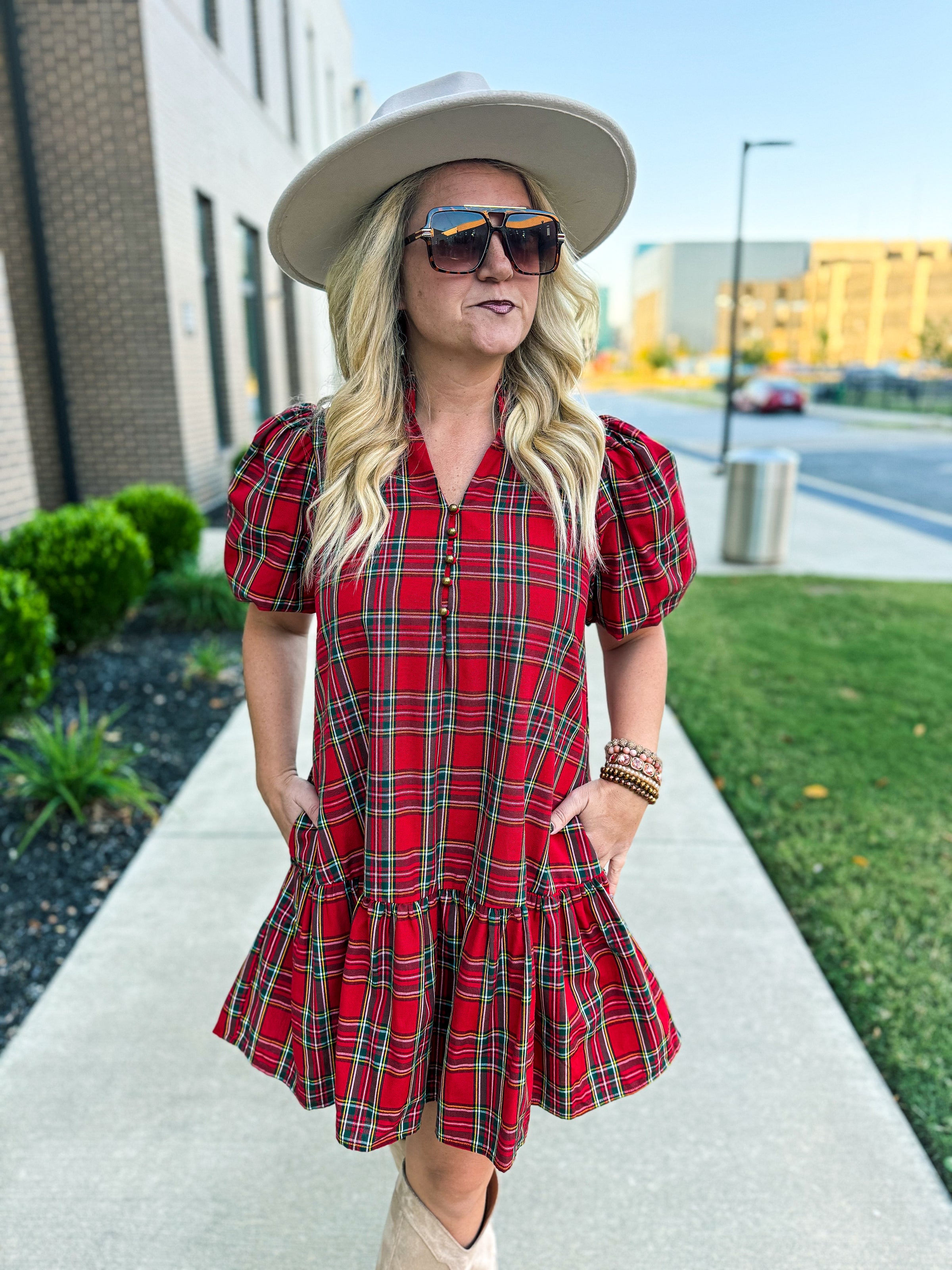 Make merry in classic plaid style with our Red Plaid Dress — the perfect festive look for the holiday season! Featuring a traditional red tartan print with hints of green and gold, this dress captures timeless Christmas charm with a modern, feminine twist.