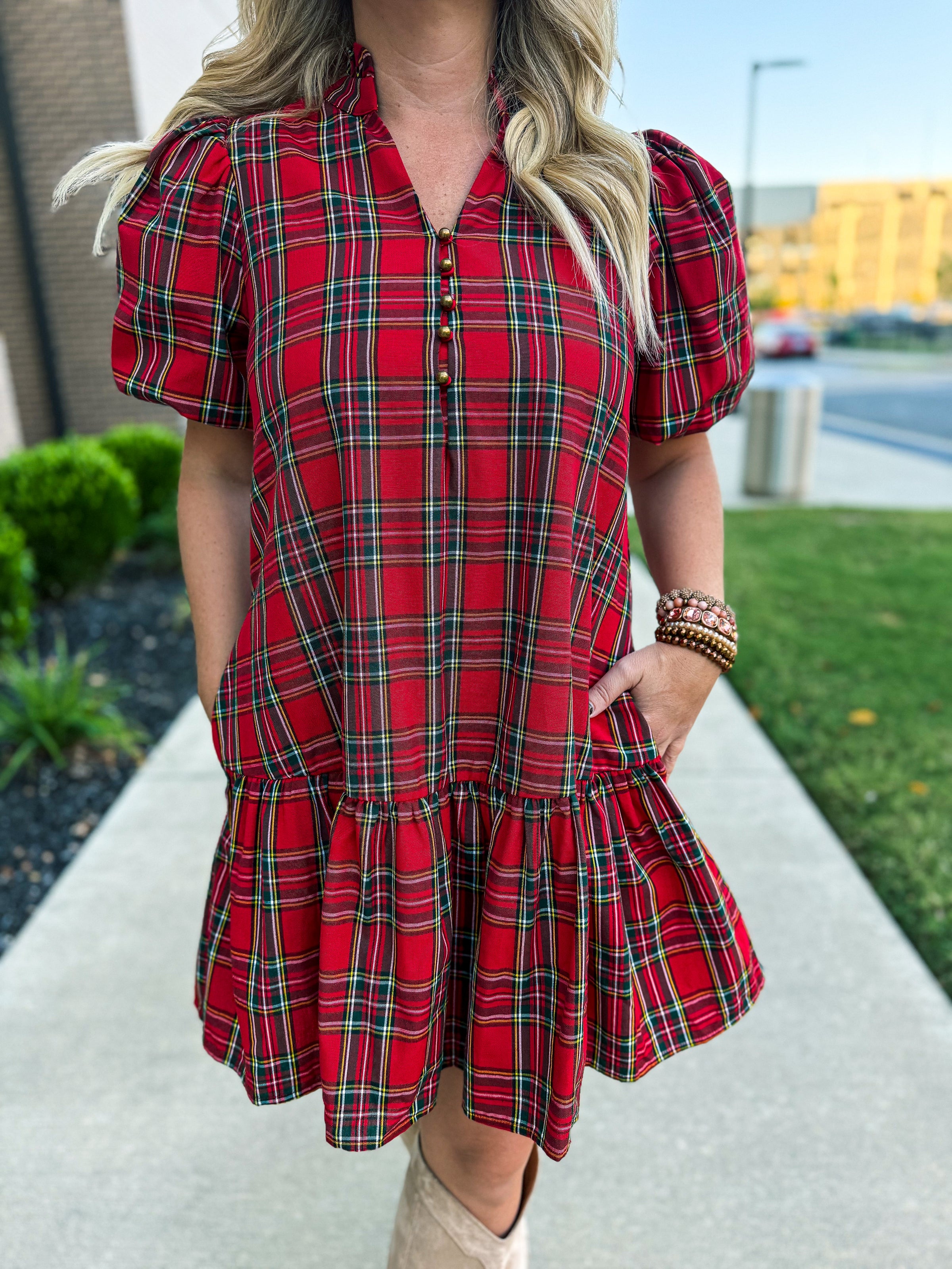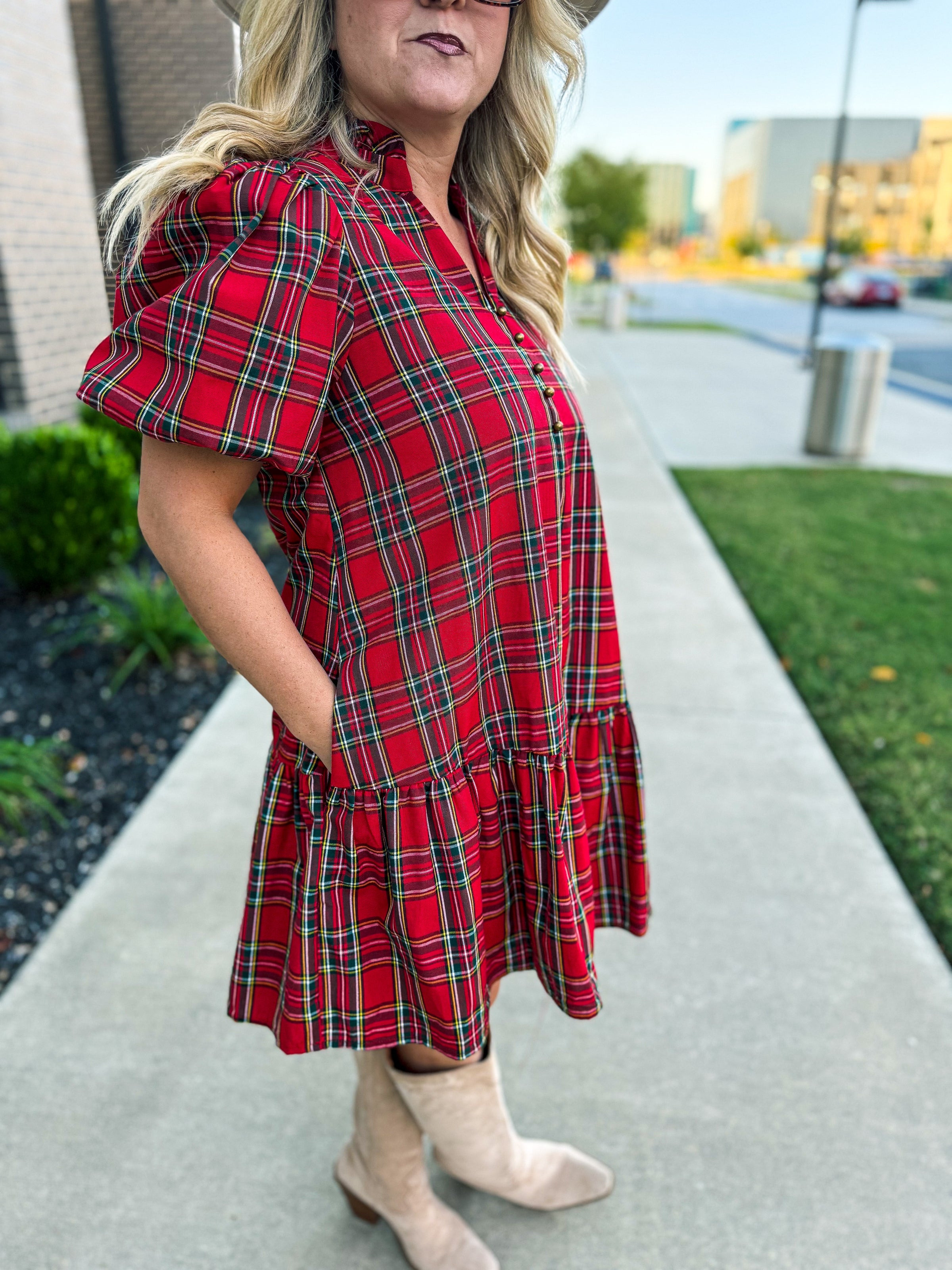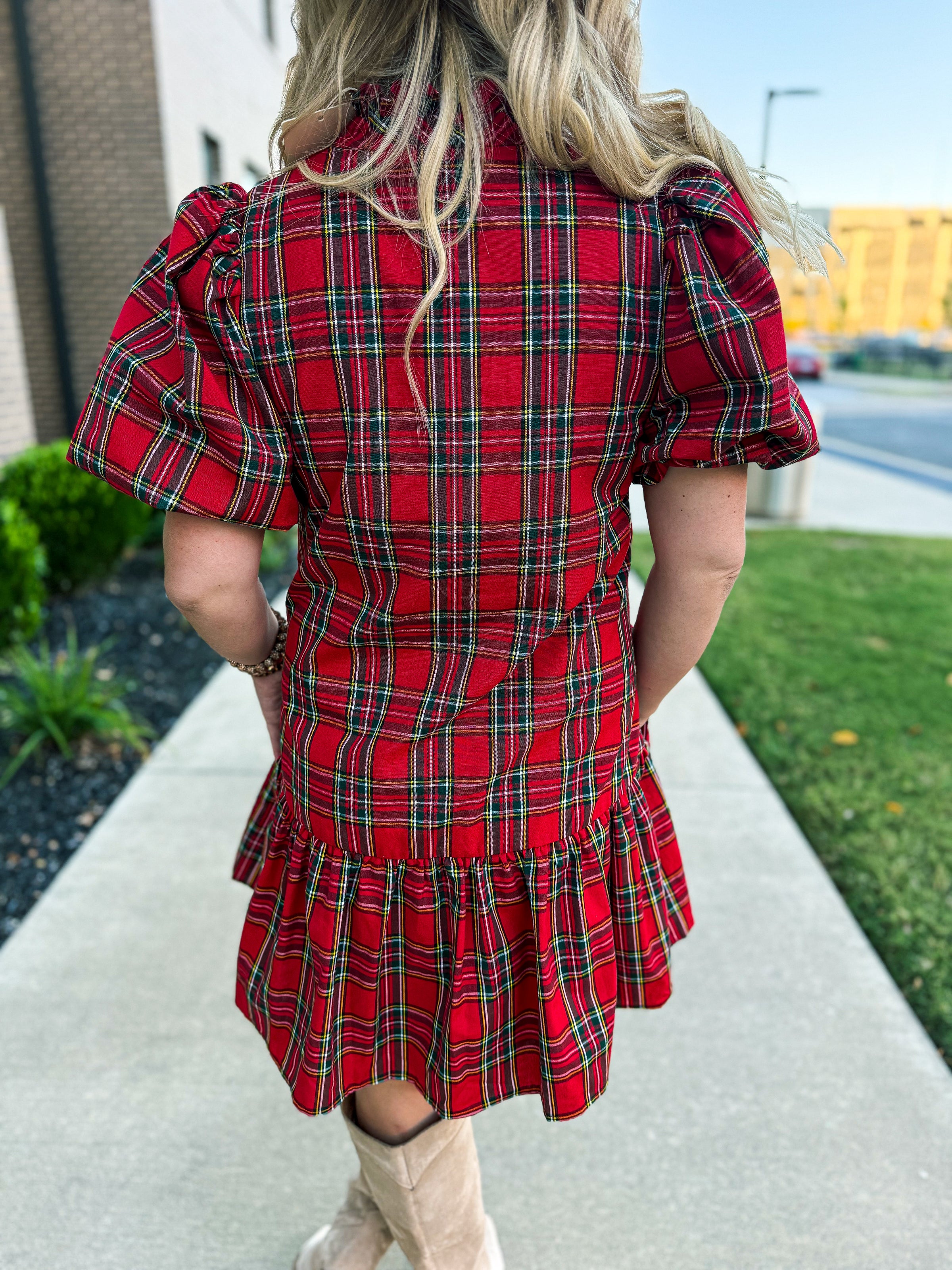 ❤️ Holiday Cheer Plaid Ruffle Dress