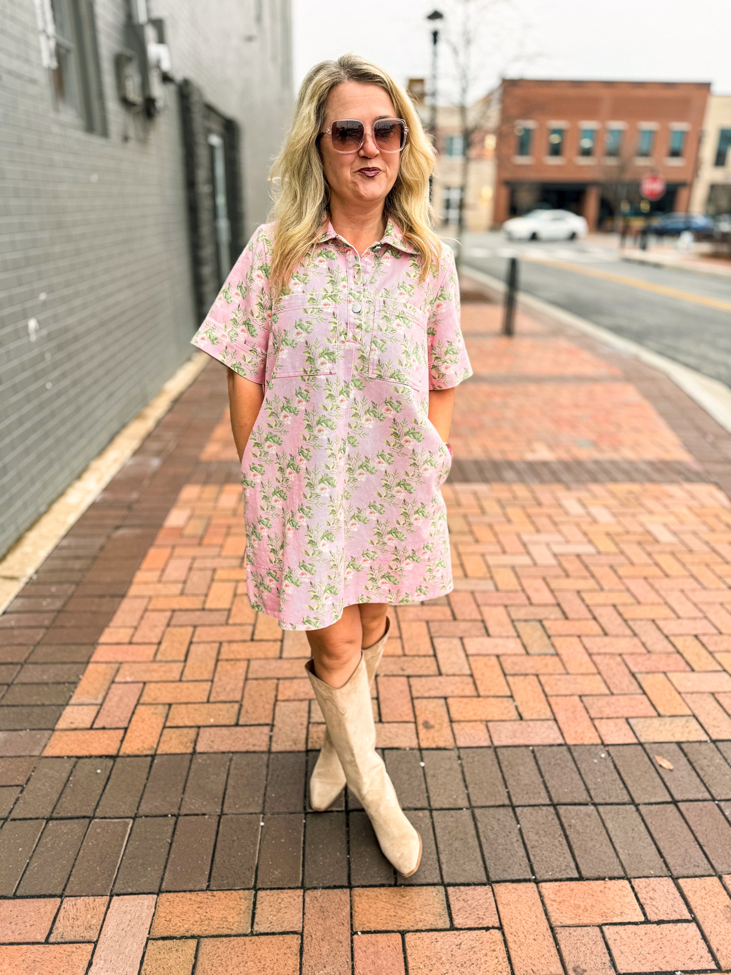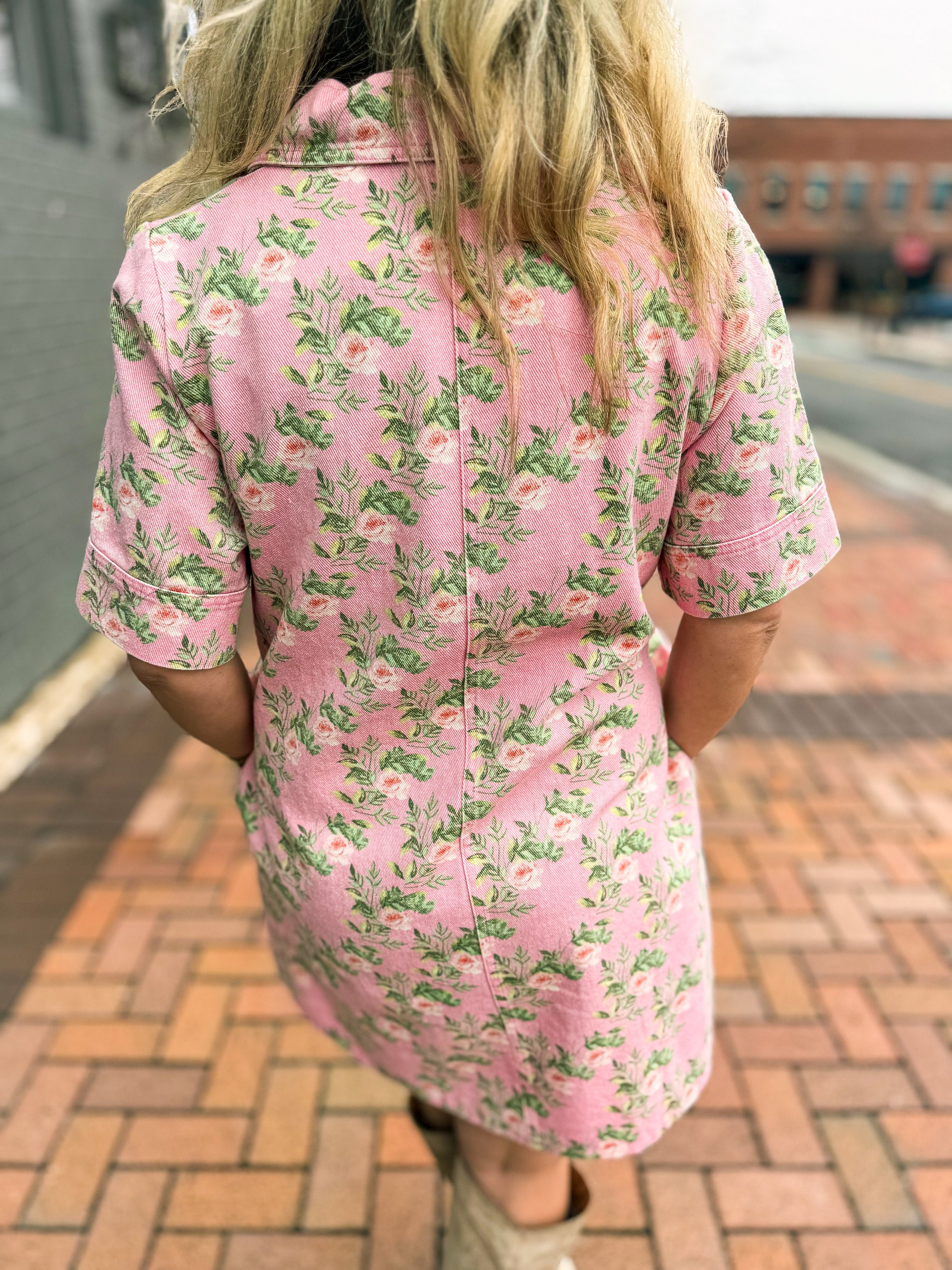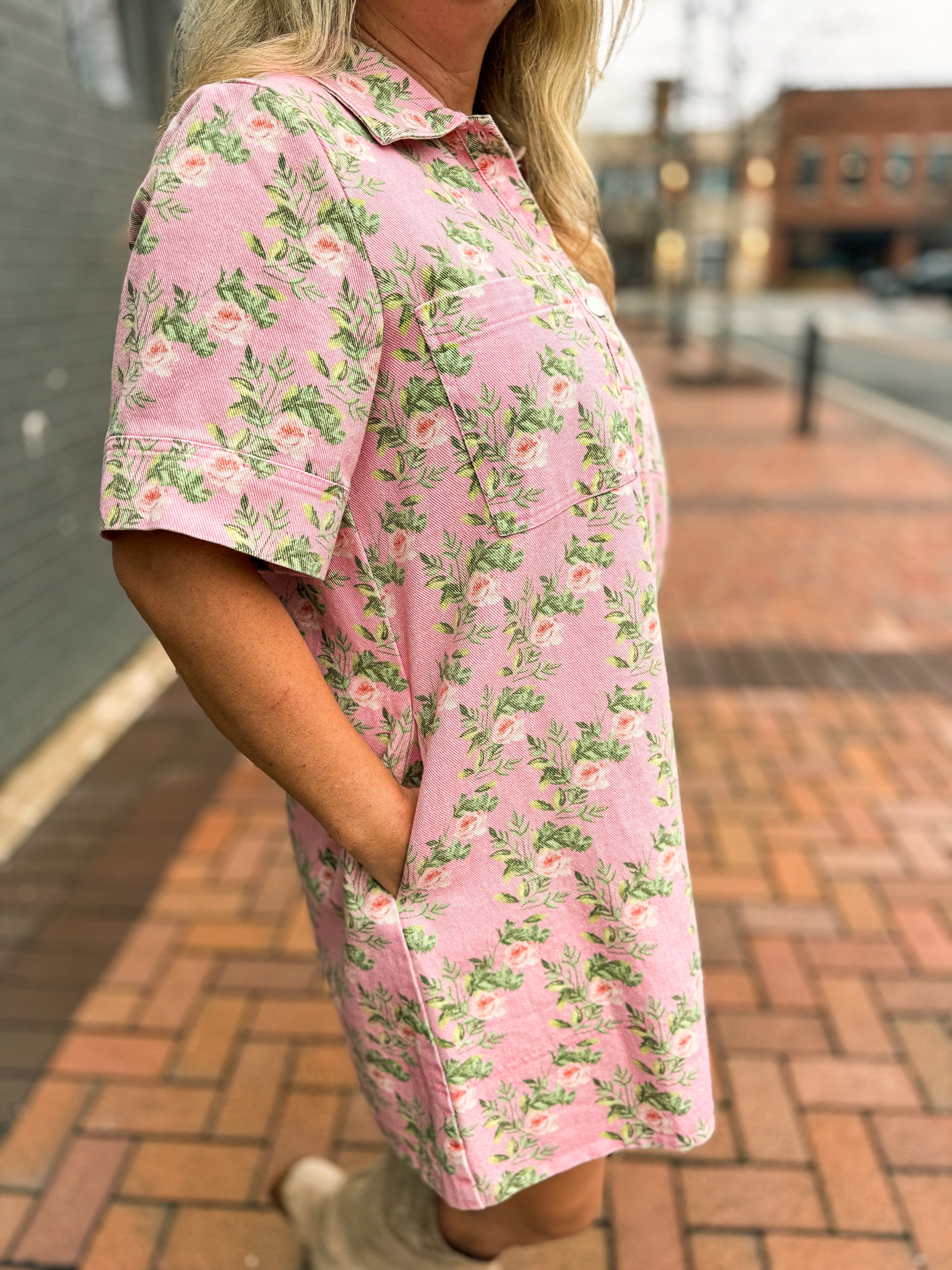 Pink Floral Denim Dress