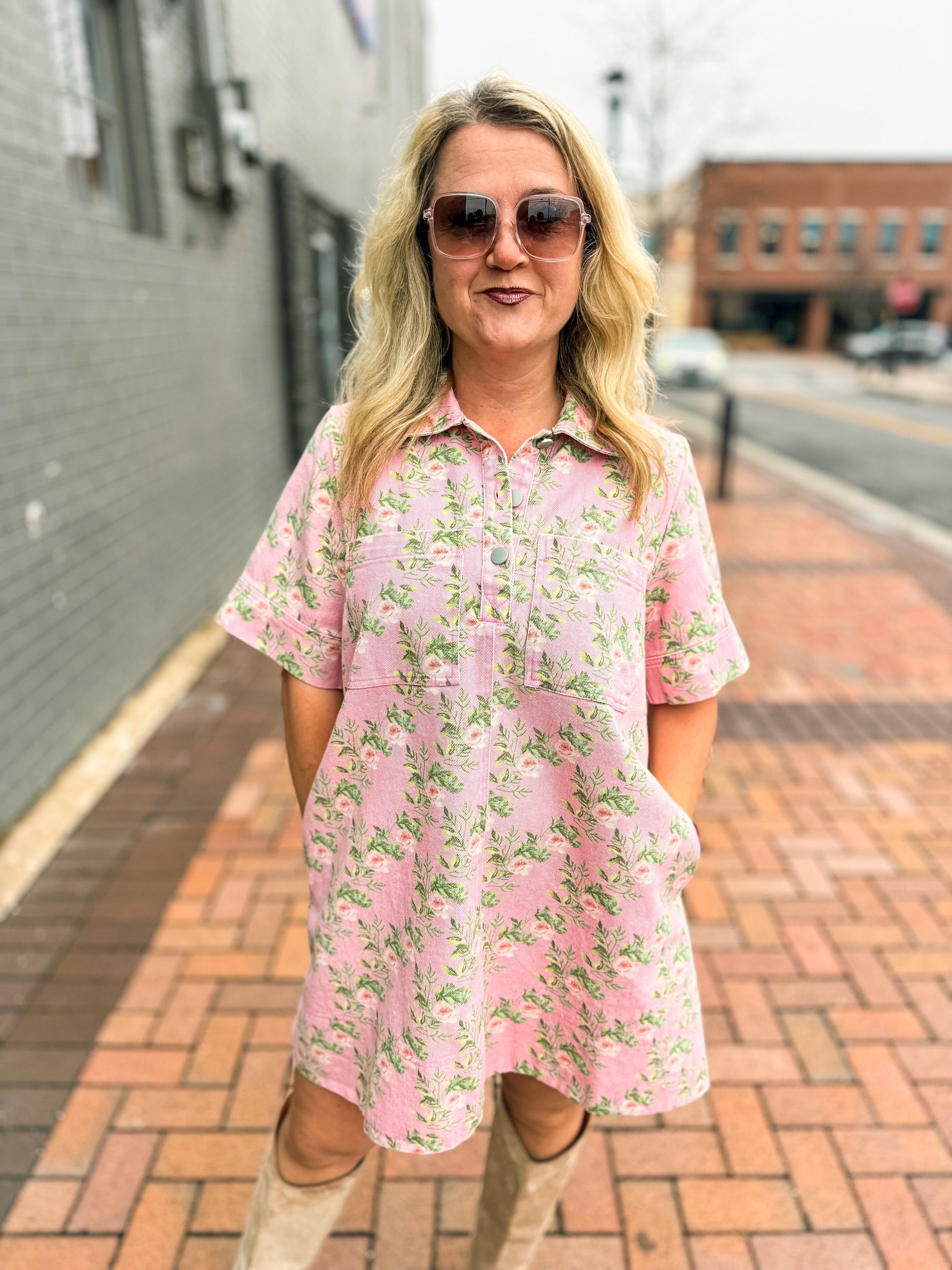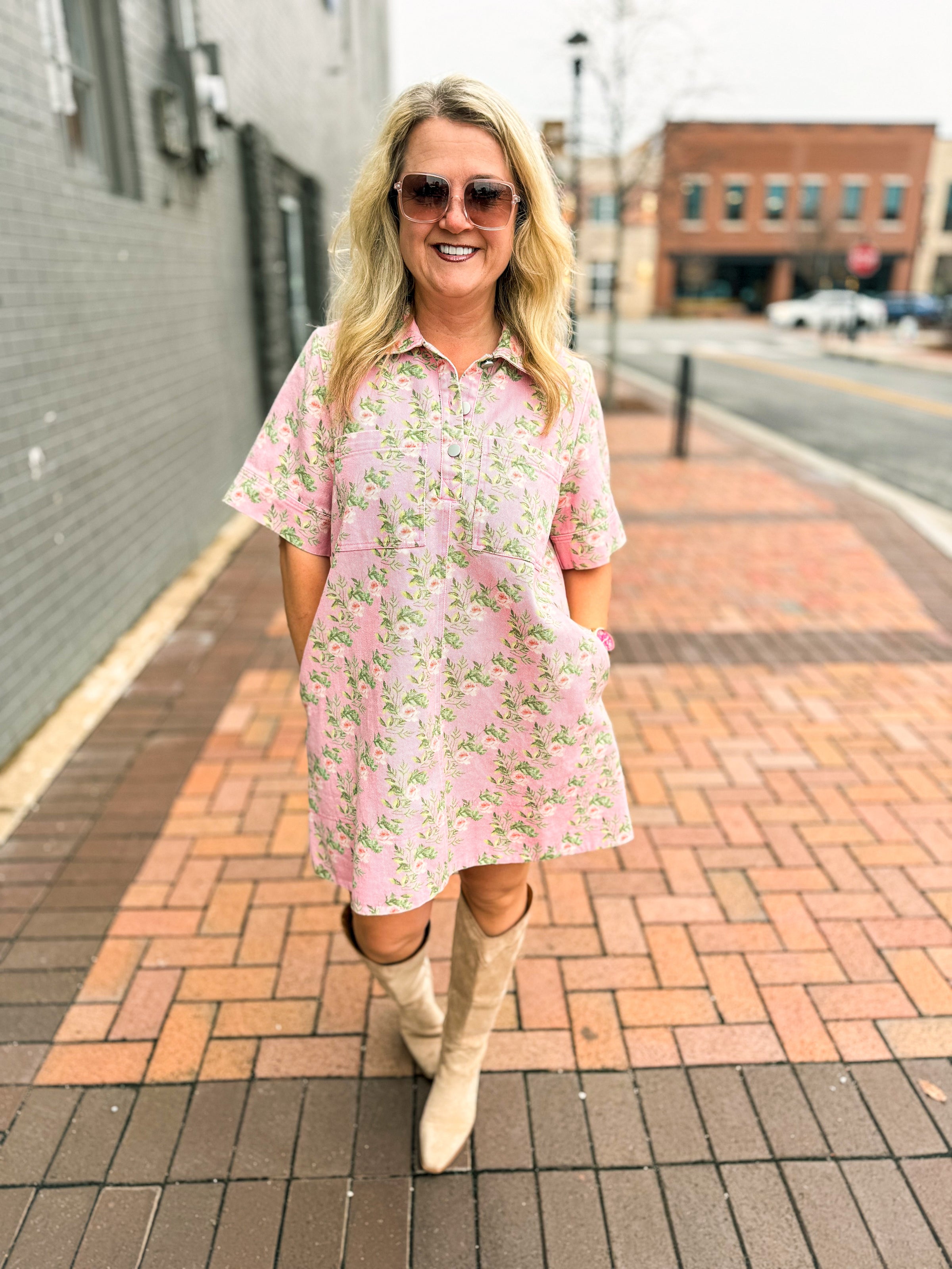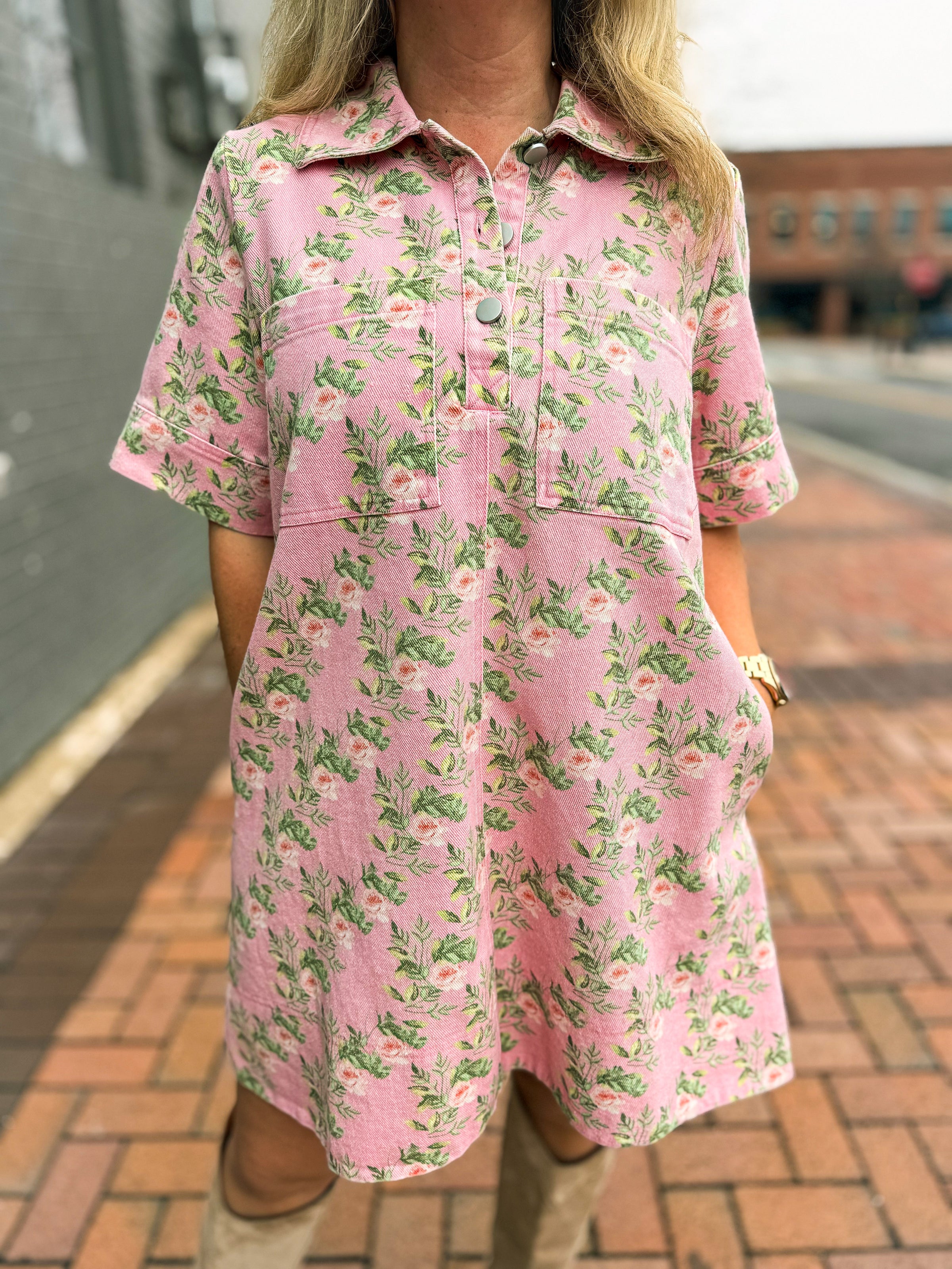 Pink Floral Denim Dress