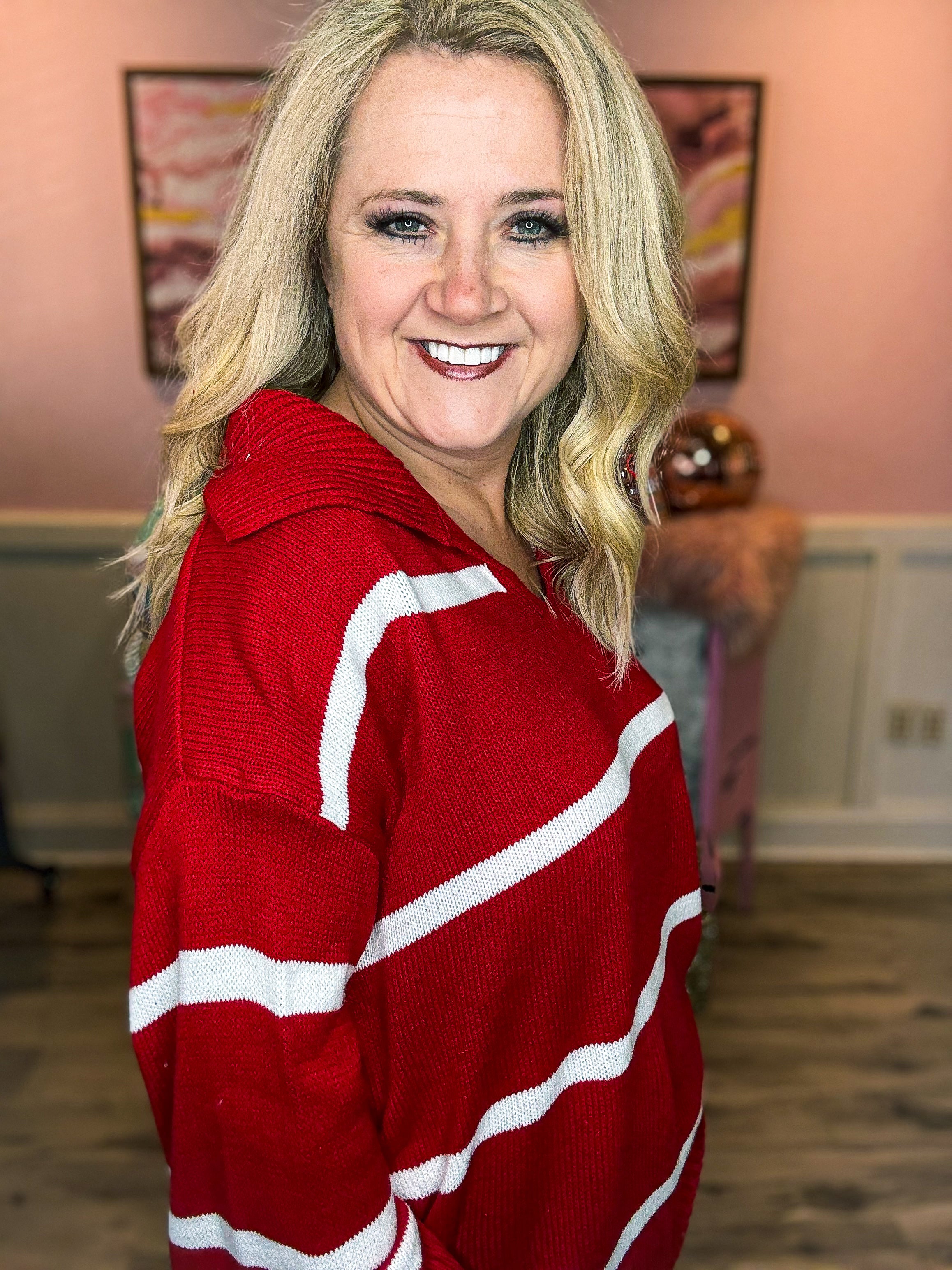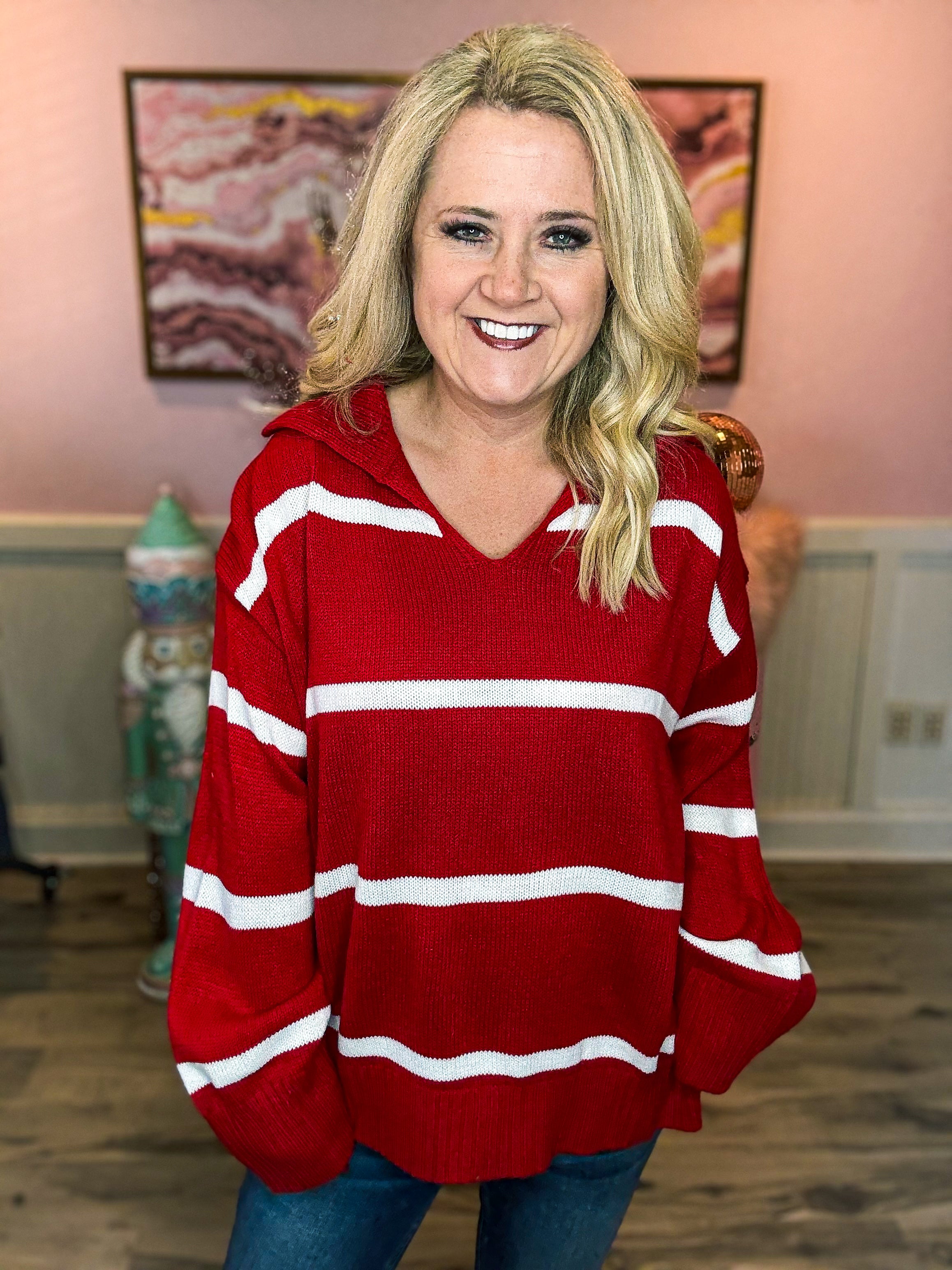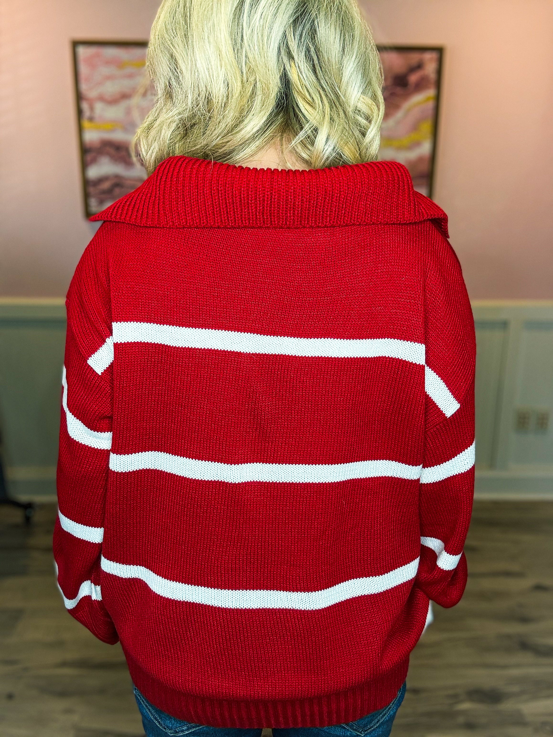 Red & White Striped Sweater-Haptics