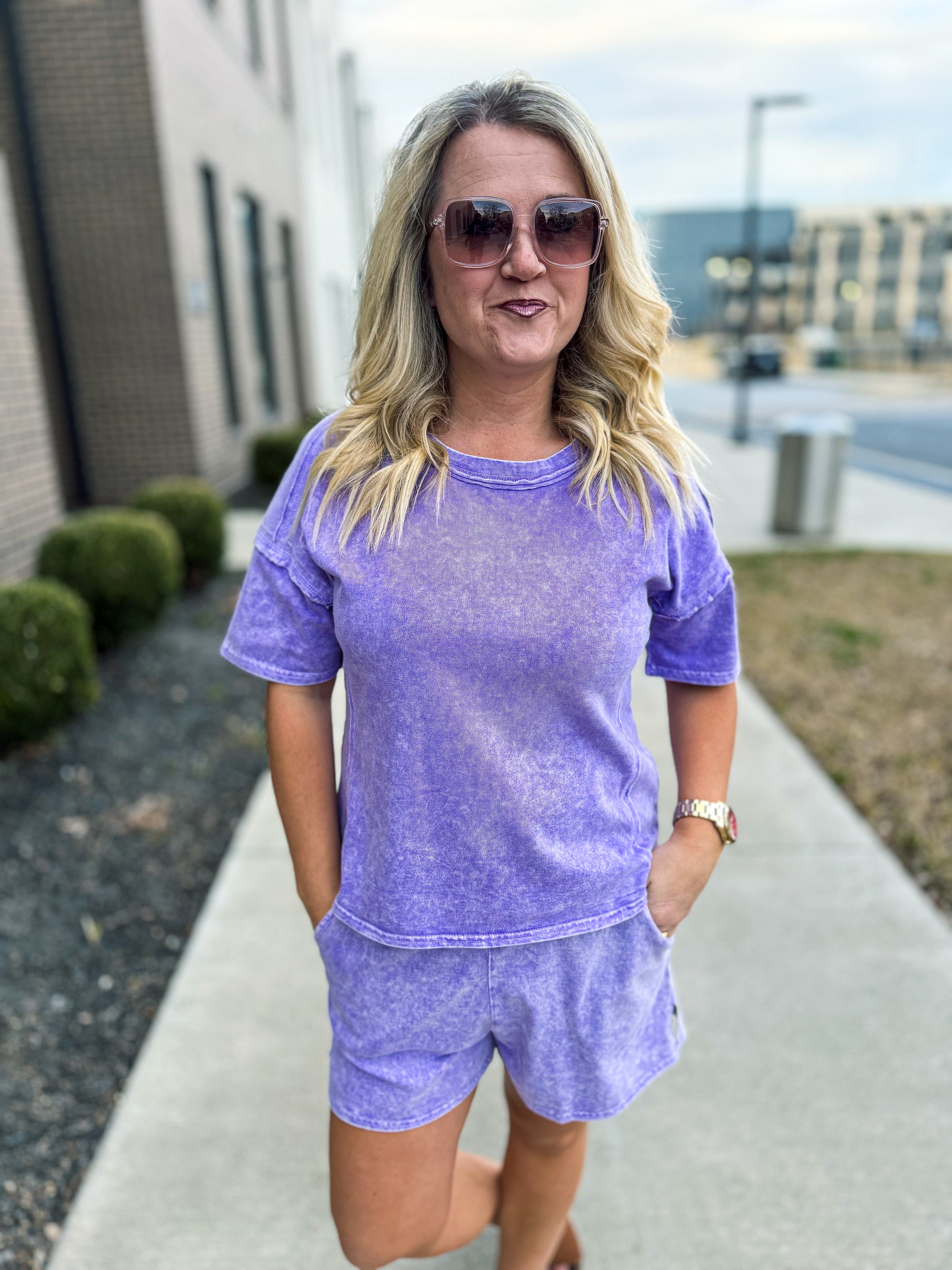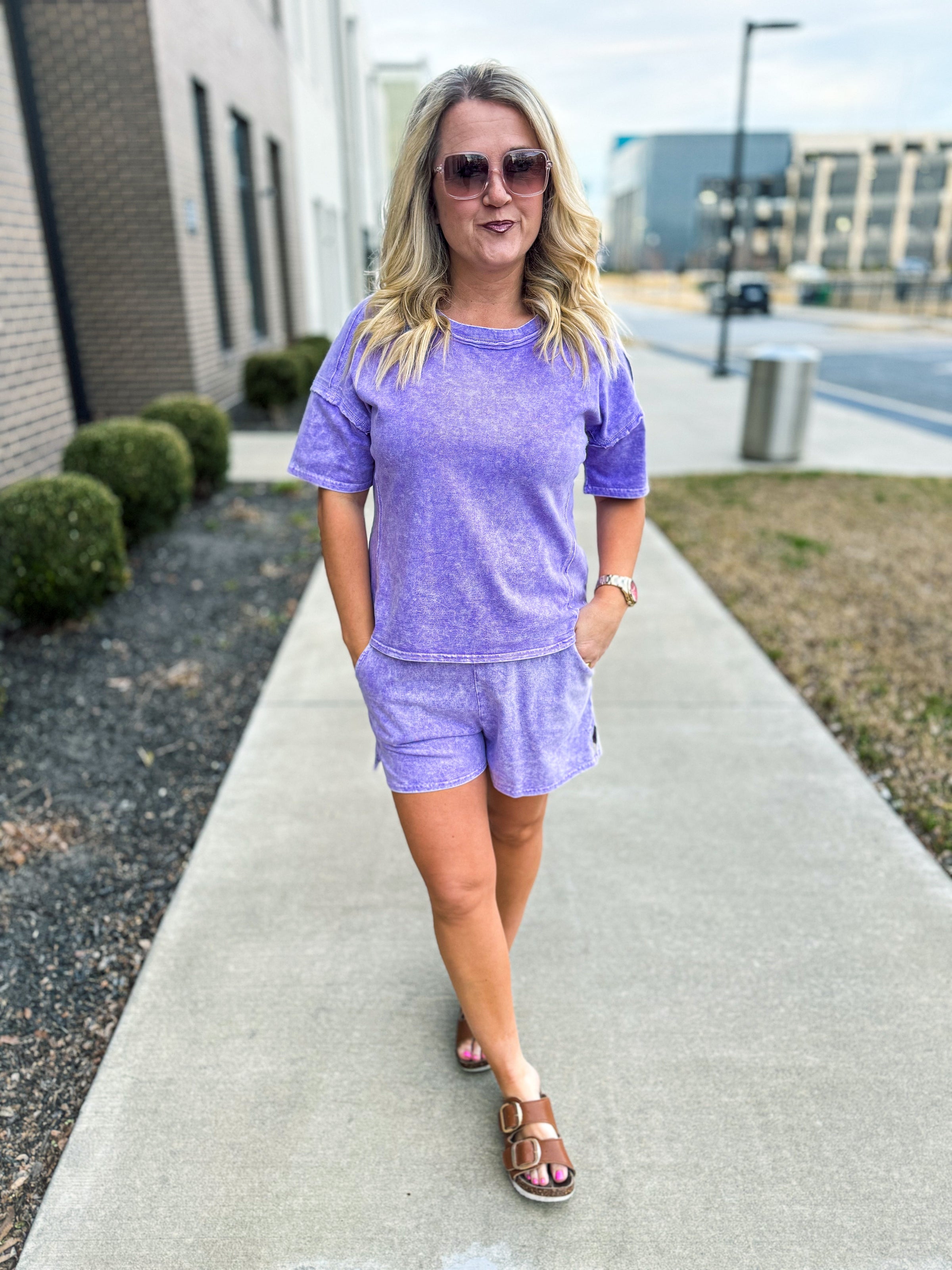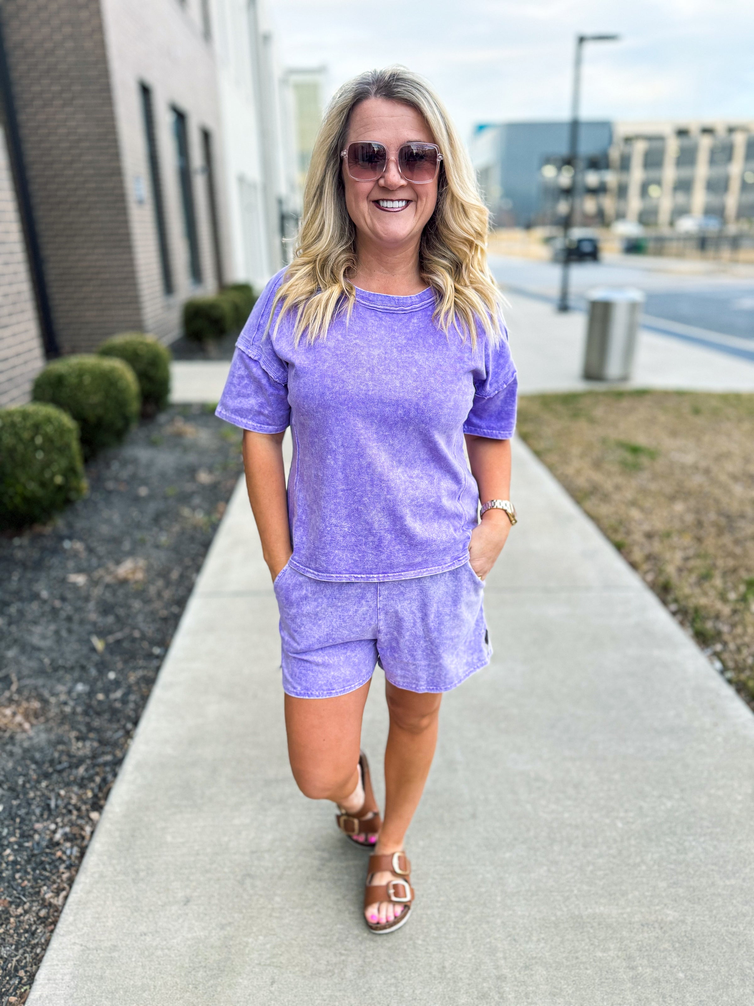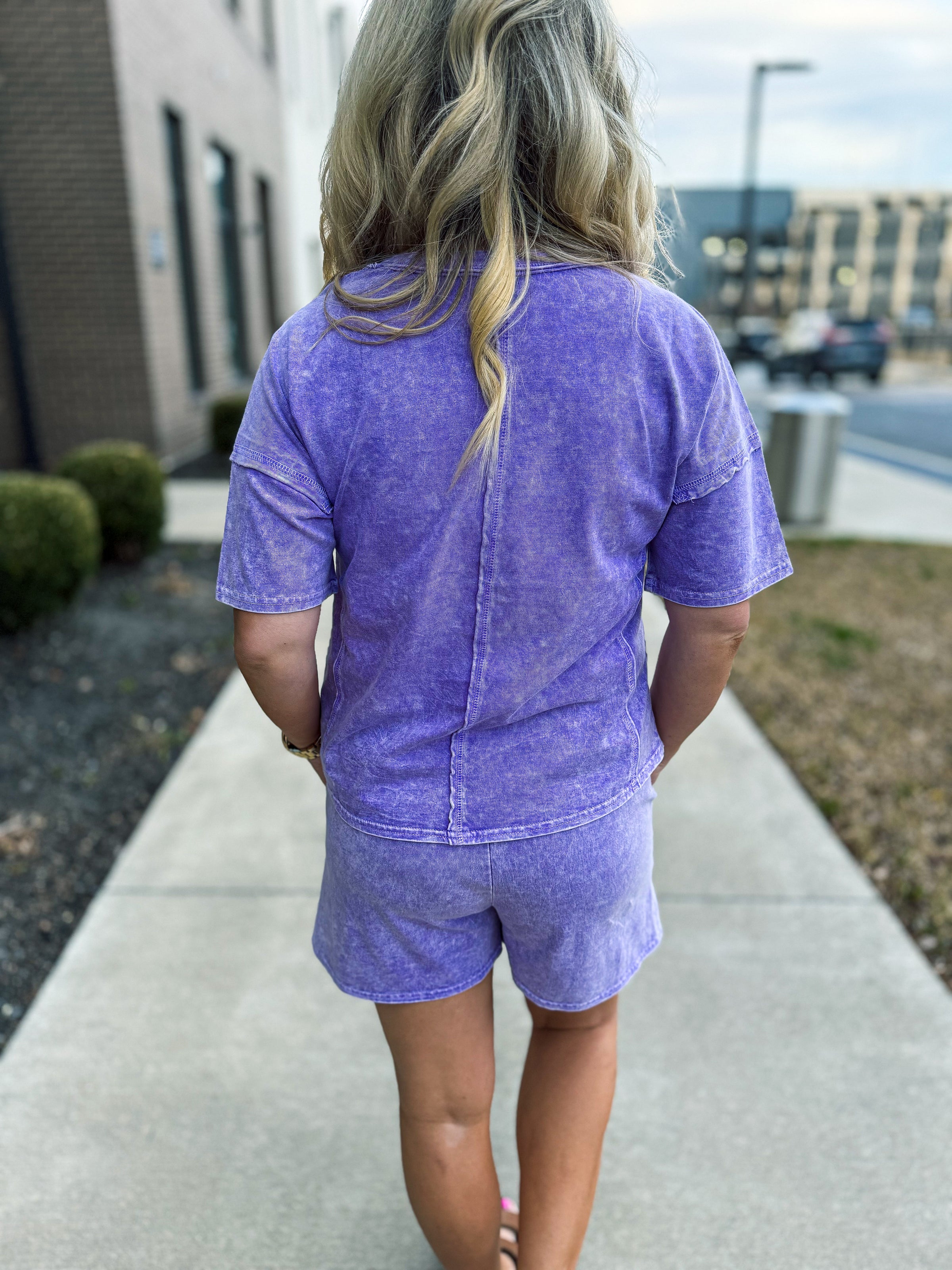 Washed Short Sleeve Set-Purple