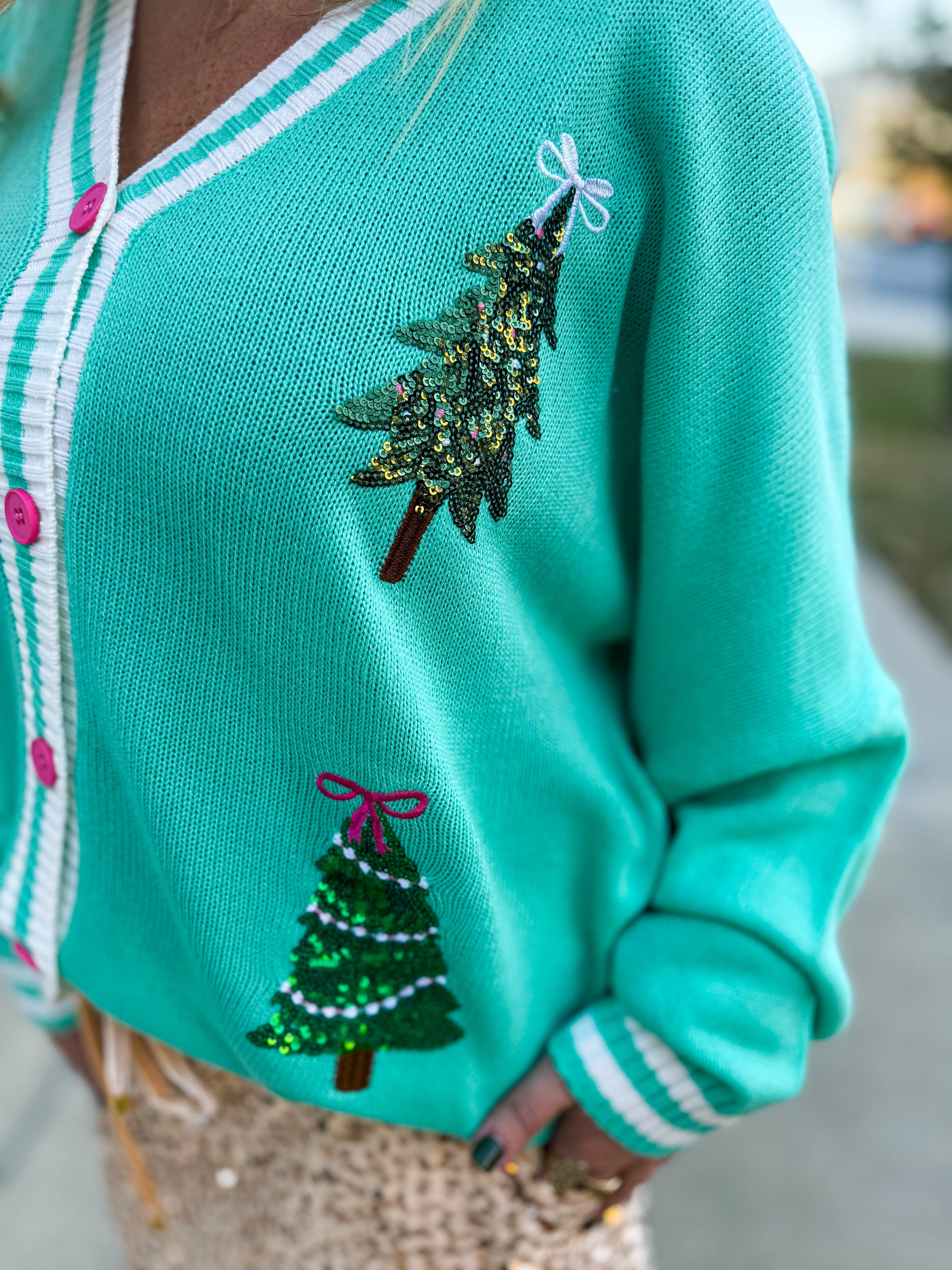 Teal Christmas Tree Cardigan – Festive, Fun & Fresh for the Holidays