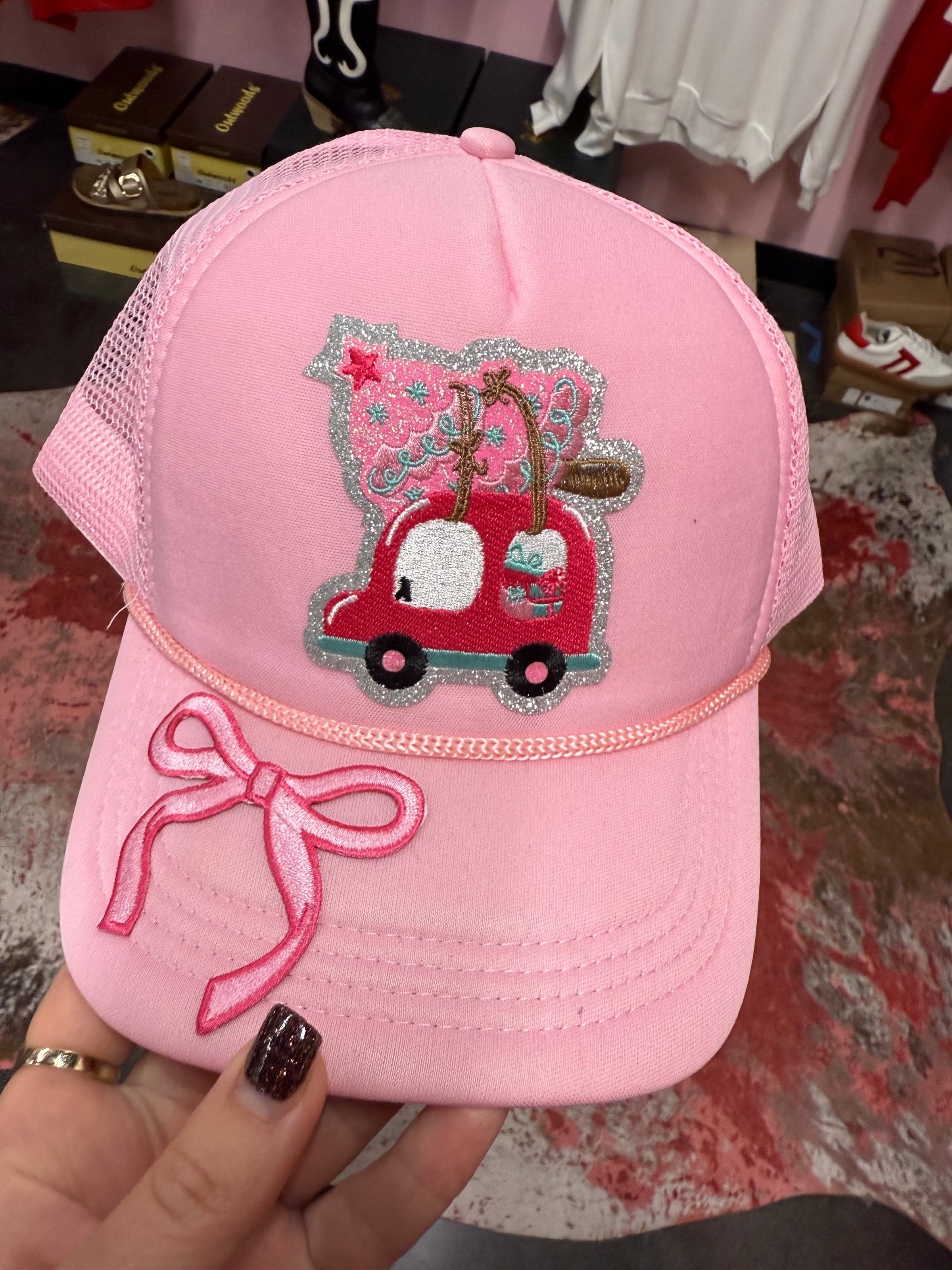 Pink Christmas Truck Bow Cap